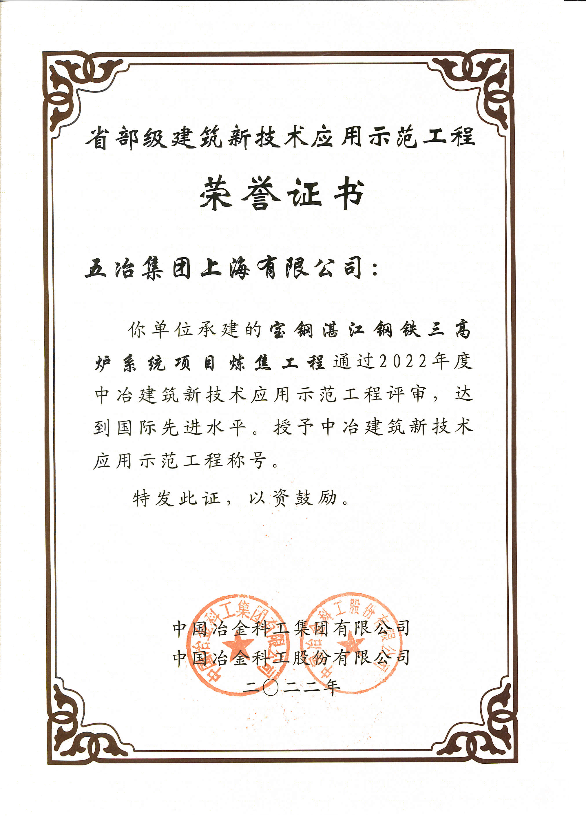 2022年宝钢湛江钢铁三高炉系统项目炼焦工程-国际先进